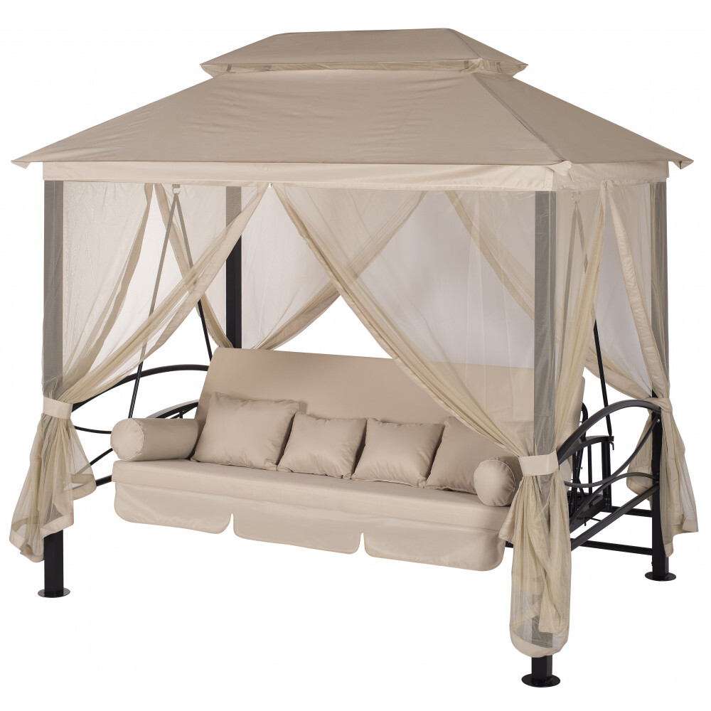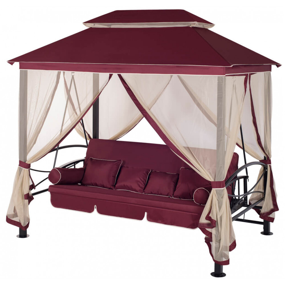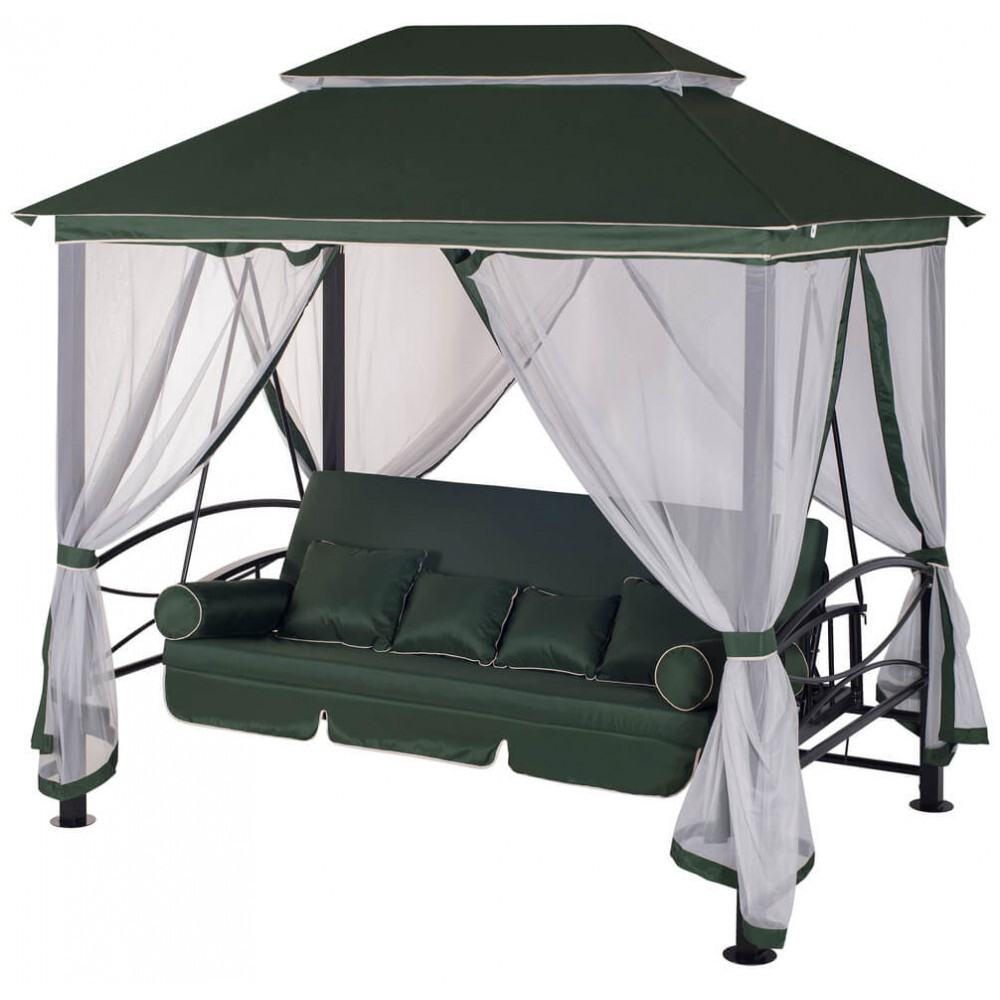 Уютное дизайнерское решение – 2 в 1: садовая беседка и полноценные 4-х местные качели надежным механизмом фиксации спинки сидения и возможностью раскладывания качелей комфортную двуспальную кровать. Прекрасно дополнят интерьер любого загородного дома. Антимоскитная сетка на молниях.