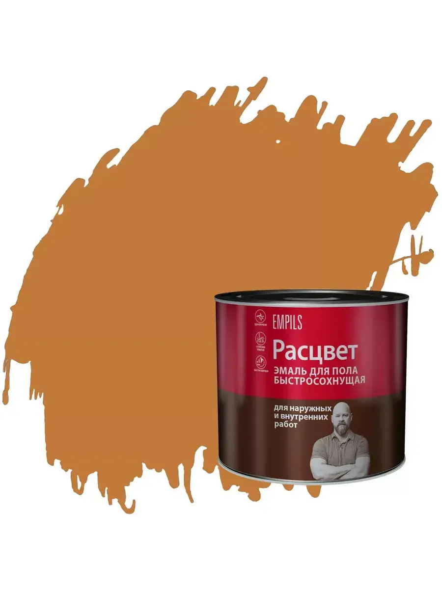 Эмаль для пола алкидно-уретановая быстросохнущая Расцвет золотистая готовая к применению. Покрытие устойчиво к истиранию, воздействию бытовых моющих средств. Защищает окрашенные поверхности от атмосферных воздействий. Предназначена для покрытия ранее окрашенных или неокрашенных деревянных и бетонных полов и других поверхностей с повышенной механической нагрузкой, возникающей в процессе эксплуатации (бетон, кирпич, металл, дерево, ДСП, ДВП и т.д.). Подходит для окраски полов, плинтусов, террас, ступеней и т.д.