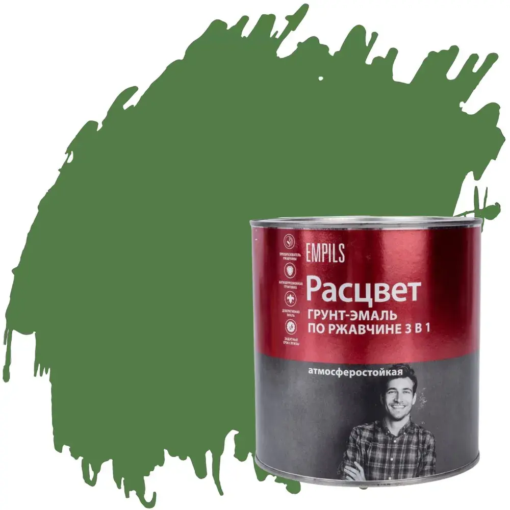 Грунт-эмаль 3 в 1 Расцвет зеленая, обладающая атмосферостойкими свойствами, эффективно защищает металлические конструкции от коррозии и выполняет декоративные функции. Этот продукт позволяет значительно сократить время и усилия, затрачиваемые на процесс окрашивания, благодаря минимизации подготовительных этапов.