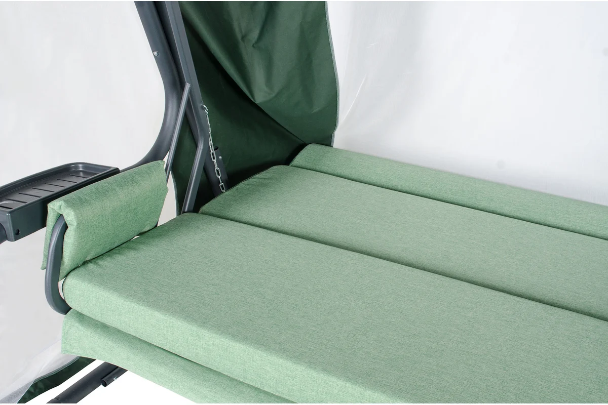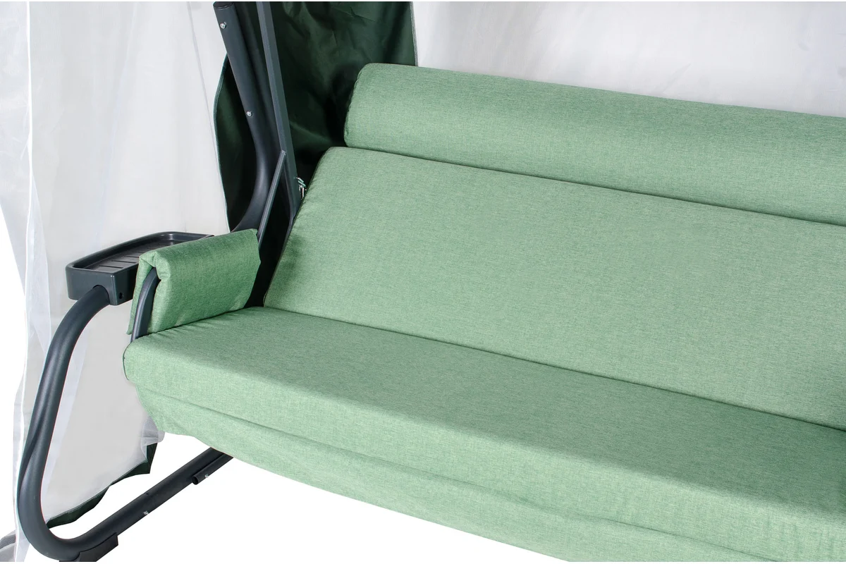 Идеальное сочетание изящности, надёжности и комфорта. Угол наклона спинки регулируется пошагово, при этом качели можно разложить полностью на 180 градусов. Основа сидения–прочная оцинкованная сетка. Текстильный комплект изготовлен из полиэфирной ткани (PEOutdoor),с водо- и грязеотталкивающими свойствами.Тент с антимоскитной сеткой с угловыми вставками из тентовой ткани. Садовые качели «Мерида Премиум» – функциональный и красивый элемент обстановки придомовой территории или интерьера открытой террасы. Заказать изделие с гарантией качества предлагает производитель – компания Удачная мебель. Модель из металла надежна, прочна и прослужит не один сезон, при этом никакого особого обслуживания не потребуется, кроме поддержания чистоты текстиля с полиуретановой обработкой.