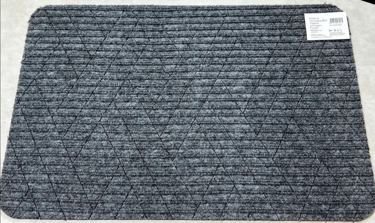 Коврик придверный влаговпитывающий Ромб Лазер без канта серый