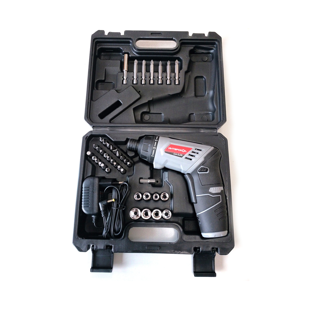Питается устройство от встроенного Li-ion аккумулятора, ёмкостью 1,3 Ач. Время заряда полностью разряженной отвёртки – 3 часа.