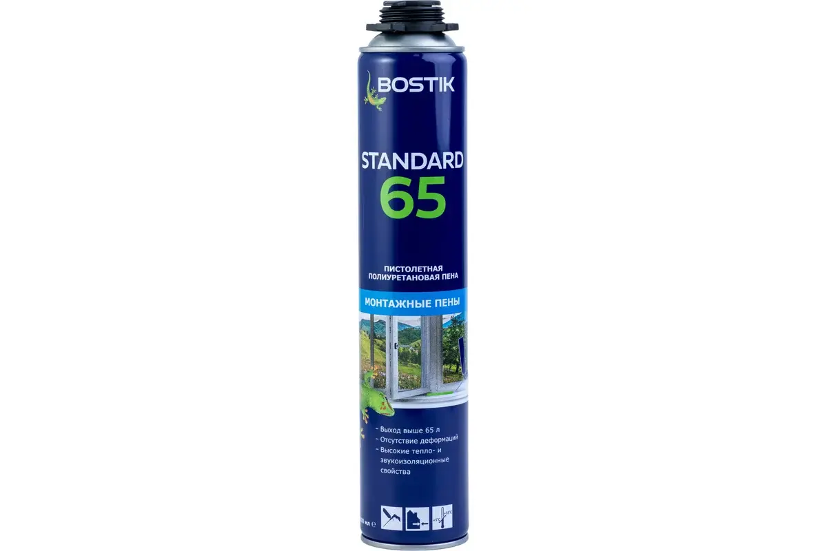 Bostik STANDARD 65 — это однокомпонентная монтажная пена, которая отвердевает при взаимодействии с влагой из воздуха. Она образует прочный, эластичный и устойчивый к деформации шов, эффективно защищая от проникновения пыли и воздуха.