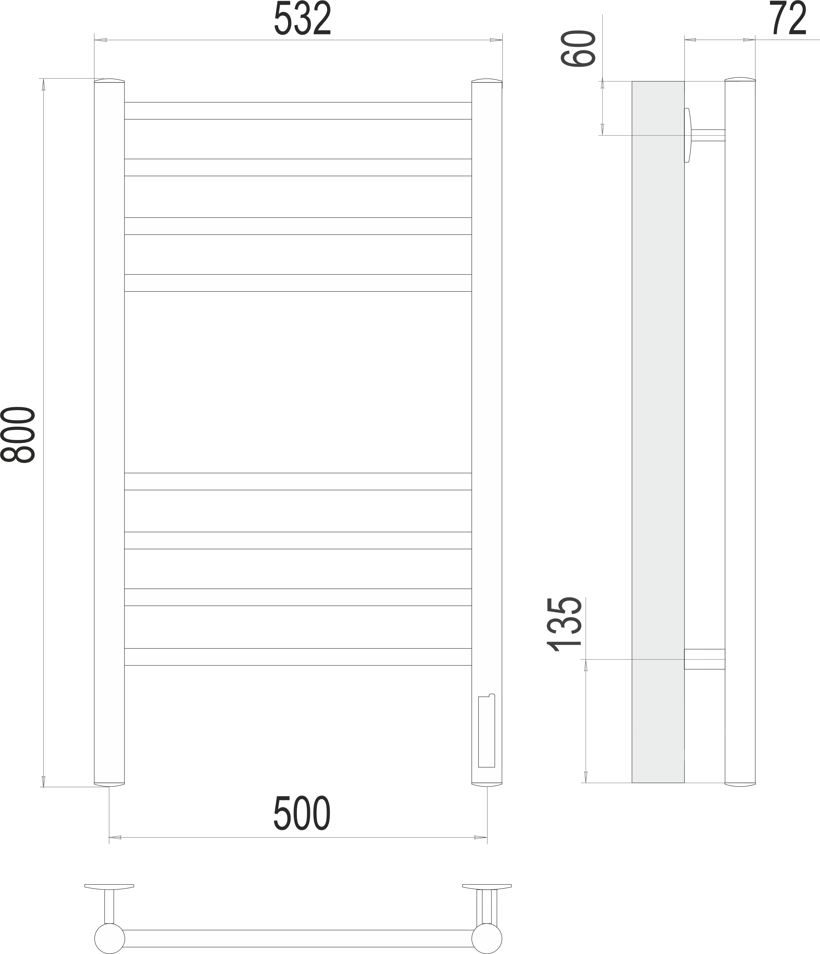Полотенцесушитель электрический Терминус Аврора П8 500х800 электро КС ГРАФИТ имеет форму лесенки. Изготовлен из прочной конструкционной стали.