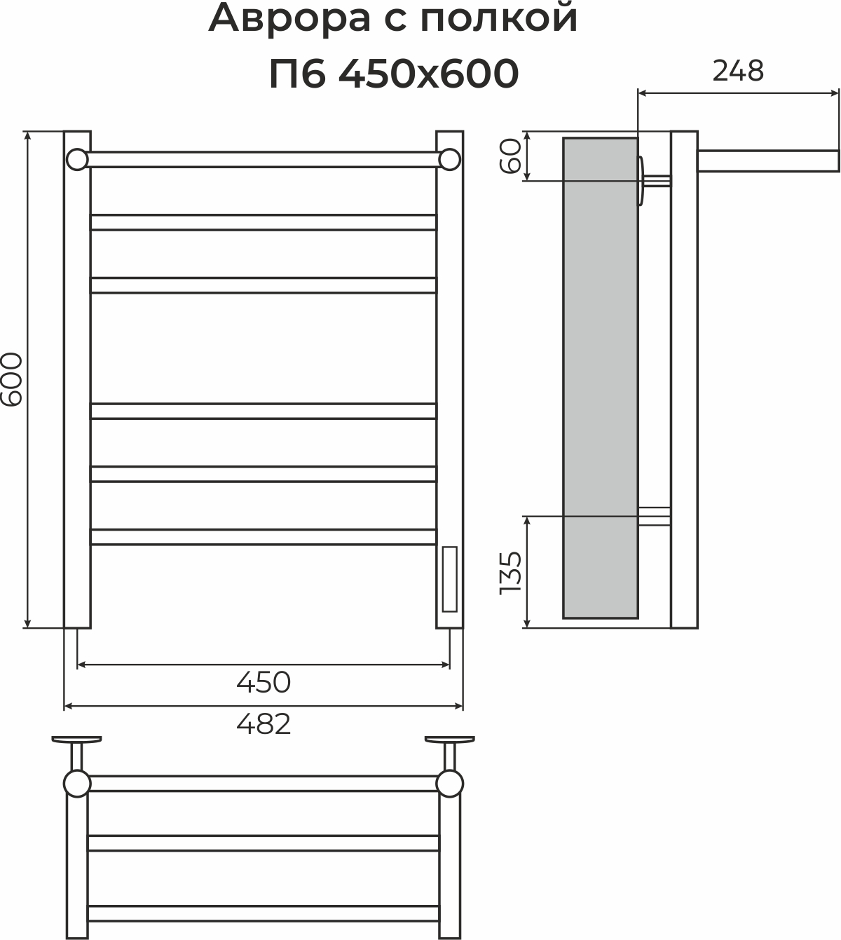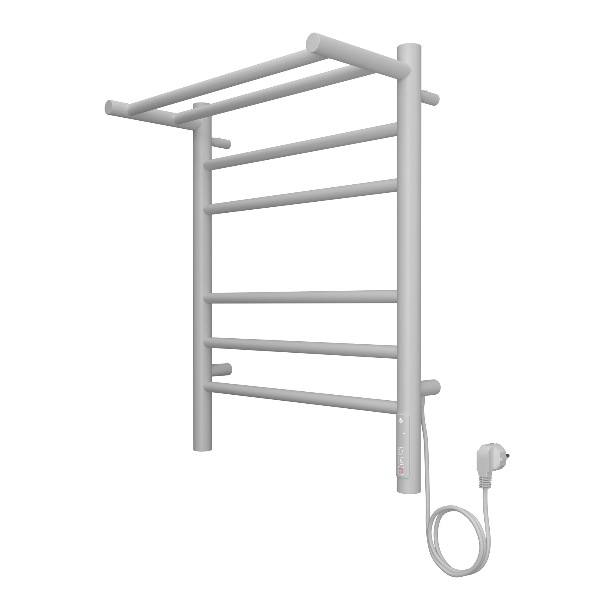 Полотенцесушитель электрический Терминус Аврора с полкой П6 450х600 электро КС 9003 матовый имеет форму лесенки. Изготовлен из прочной конструкционной стали.