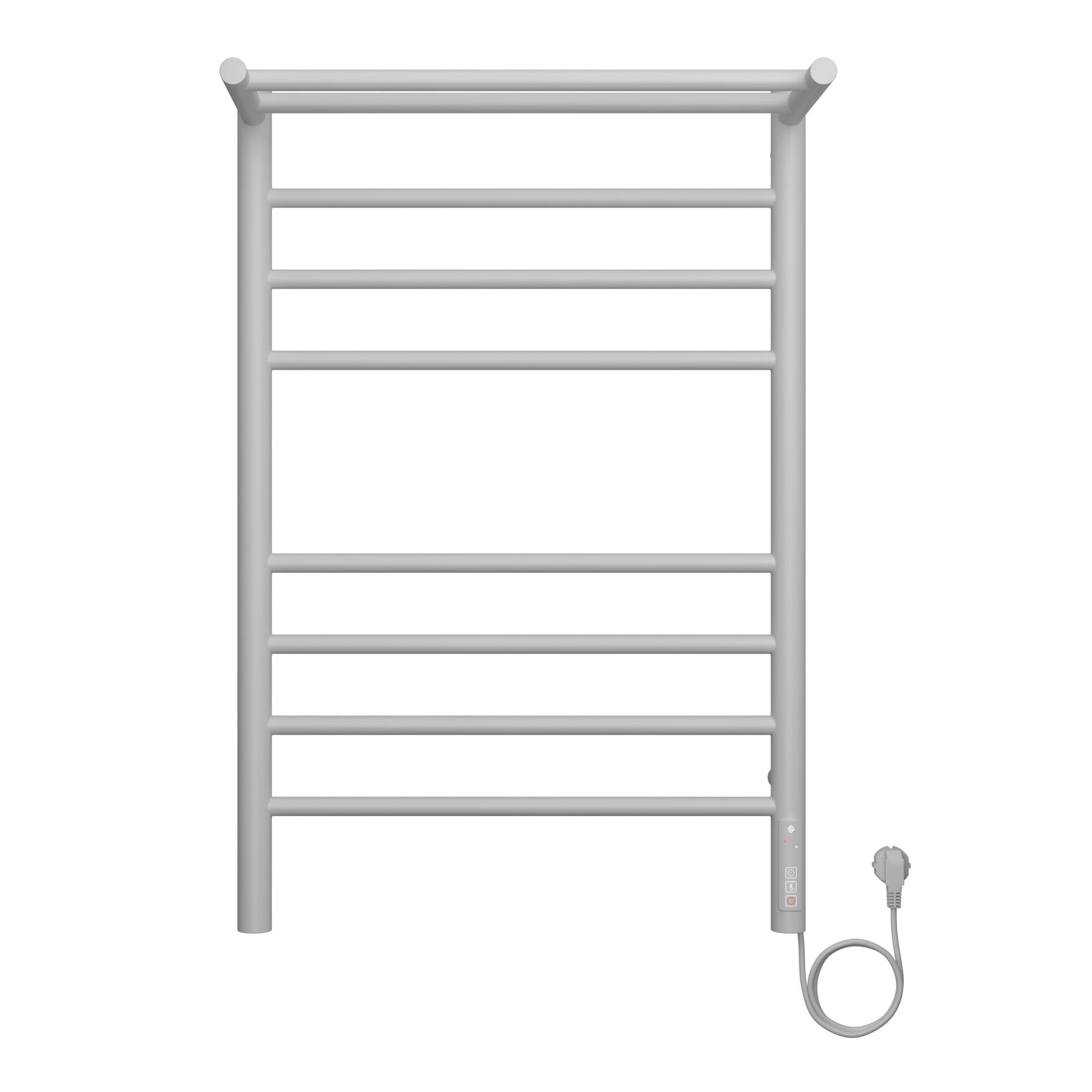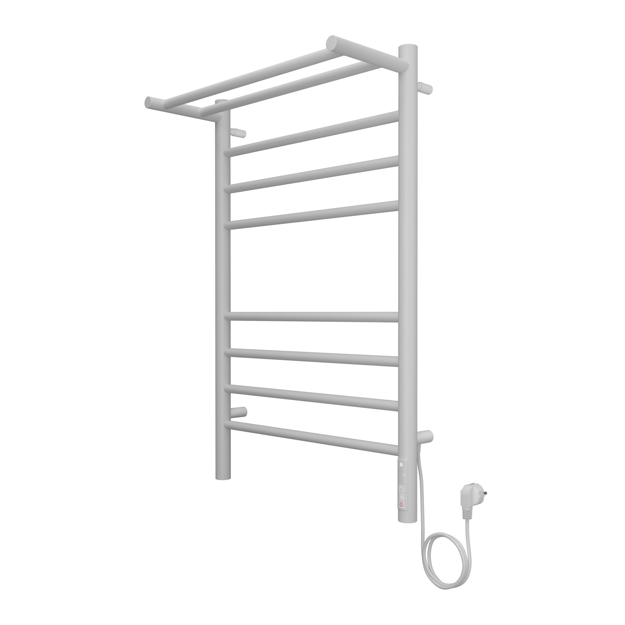 Полотенцесушитель электрический Терминус Аврора с полкой П8 500х800 электро КС 9003 матовый имеет форму лесенки. Изготовлен из прочной конструкционной стали.