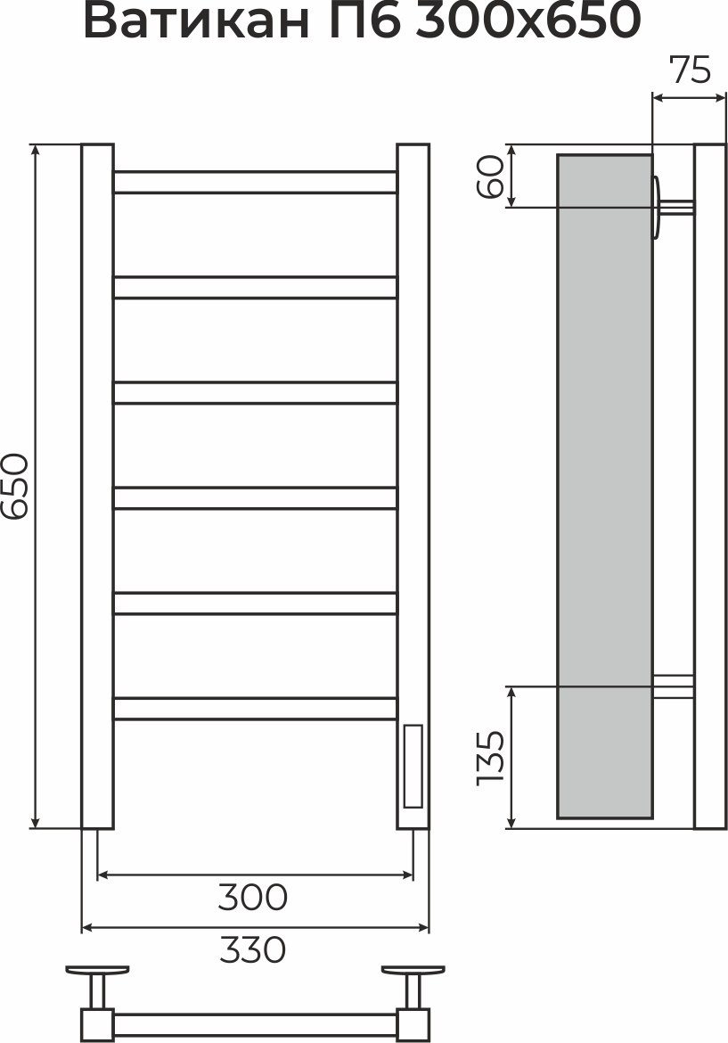 Полотенцесушитель электрический для ванной комнаты Терминус Ватикан П6 300х650 с универсальным подключением имеет форму лесенки. Изготовлен из прочной нержавеющей стали AISI 304L.