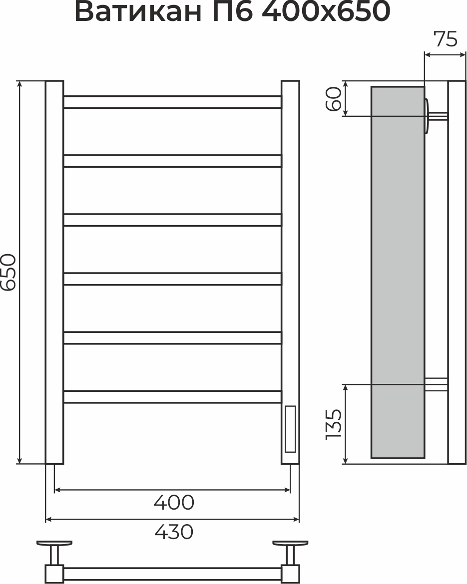 Полотенцесушитель электрический для ванной комнаты Терминус Ватикан П6 400х650 с универсальным подключением имеет форму лесенки. Изготовлен из прочной нержавеющей стали AISI 304L.