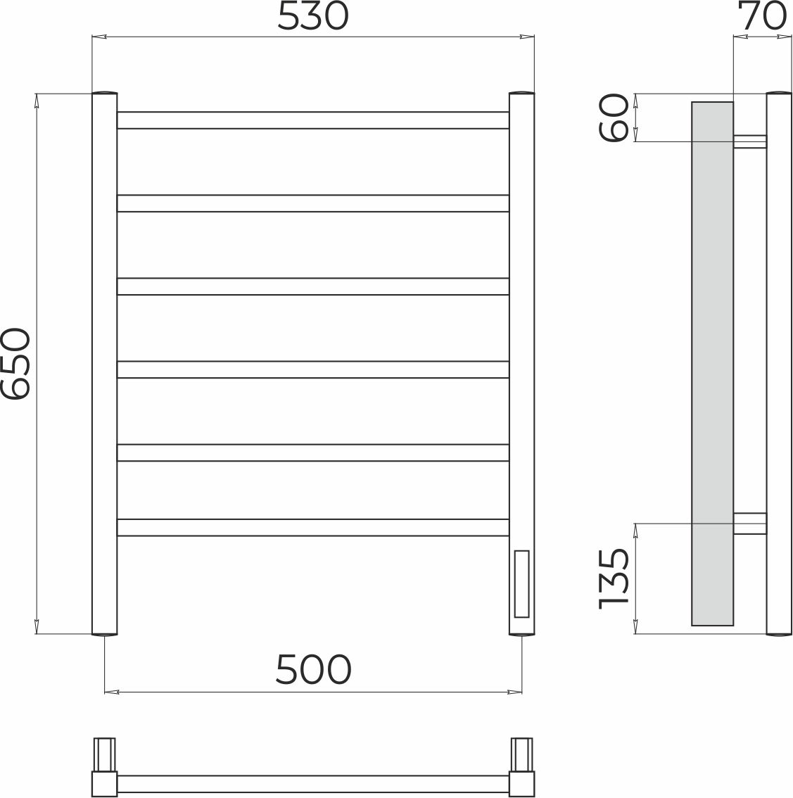 Полотенцесушитель электрический для ванной комнаты Терминус Ватикан П6 500х650 с универсальным подключением имеет форму лесенки. Изготовлен из прочной нержавеющей стали AISI 304L.