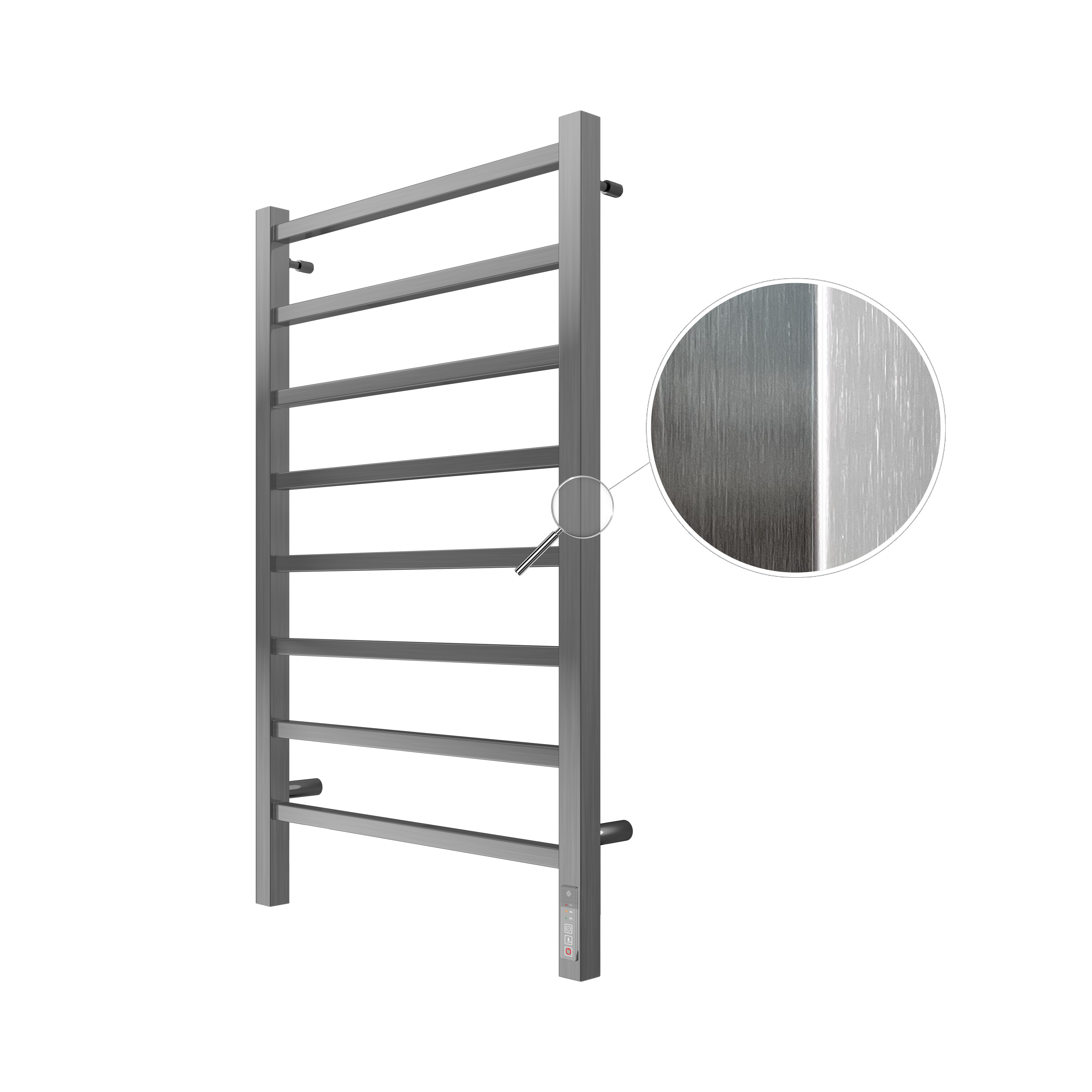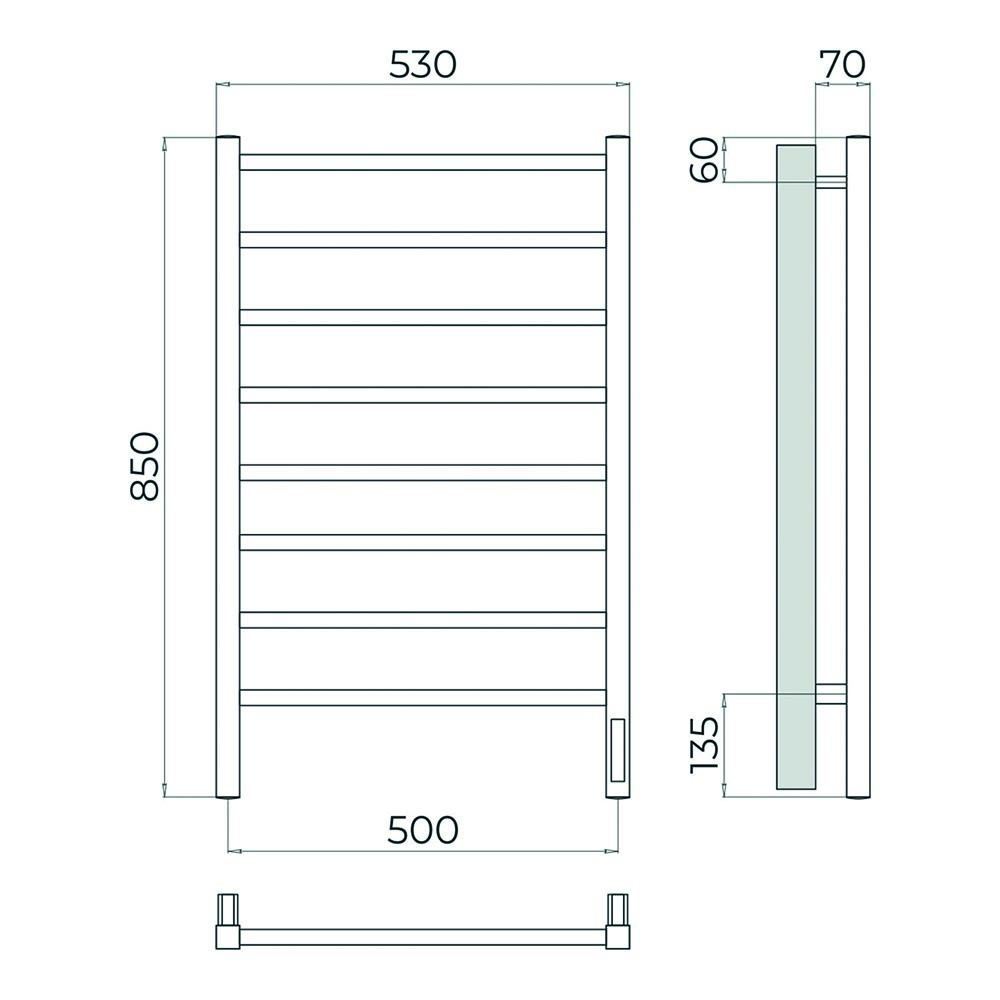 Полотенцесушитель электрический для ванной комнаты Терминус Ватикан П8 500х850 Сатин с универсальным подключением имеет форму лесенки. Изготовлен из прочной нержавеющей стали AISI 304L.