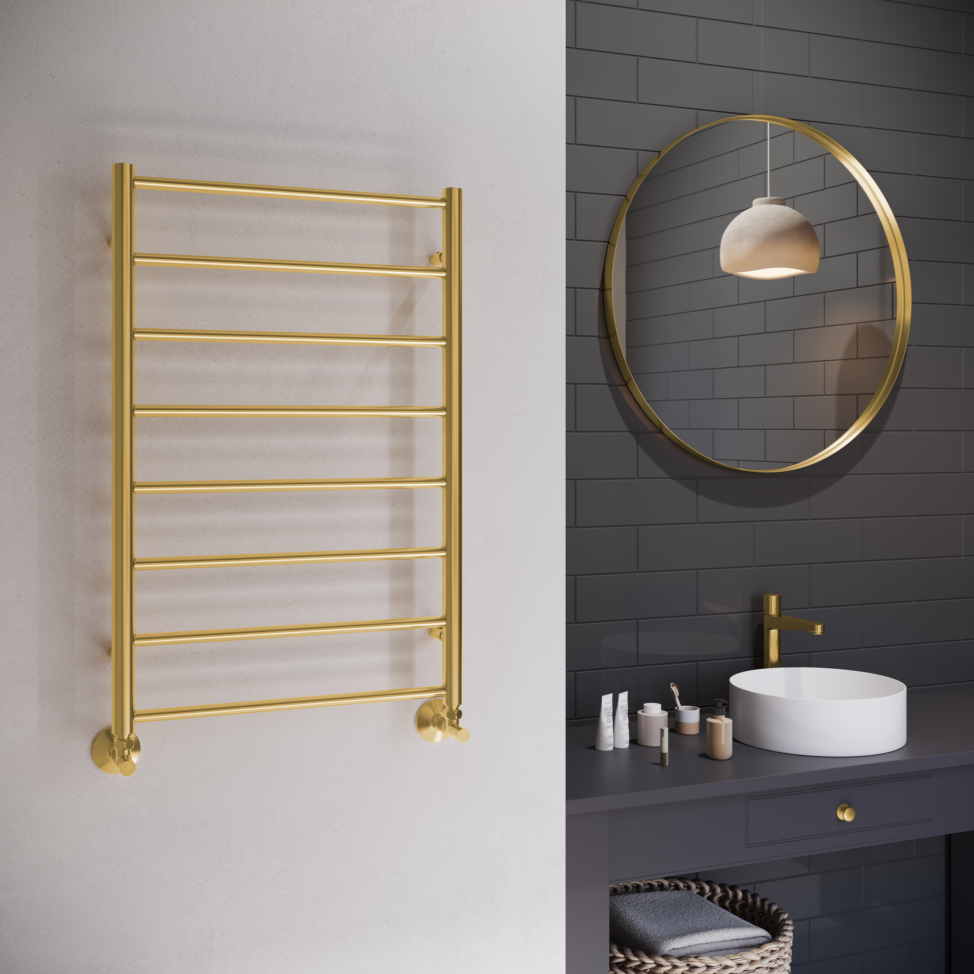 Полотенцесушитель водяной Терминус Аврора П8 500х800 Брашированное золото с нижним подключением имеет форму лесенки. Изготовлен из прочной нержавеющей стали AISI 304L.