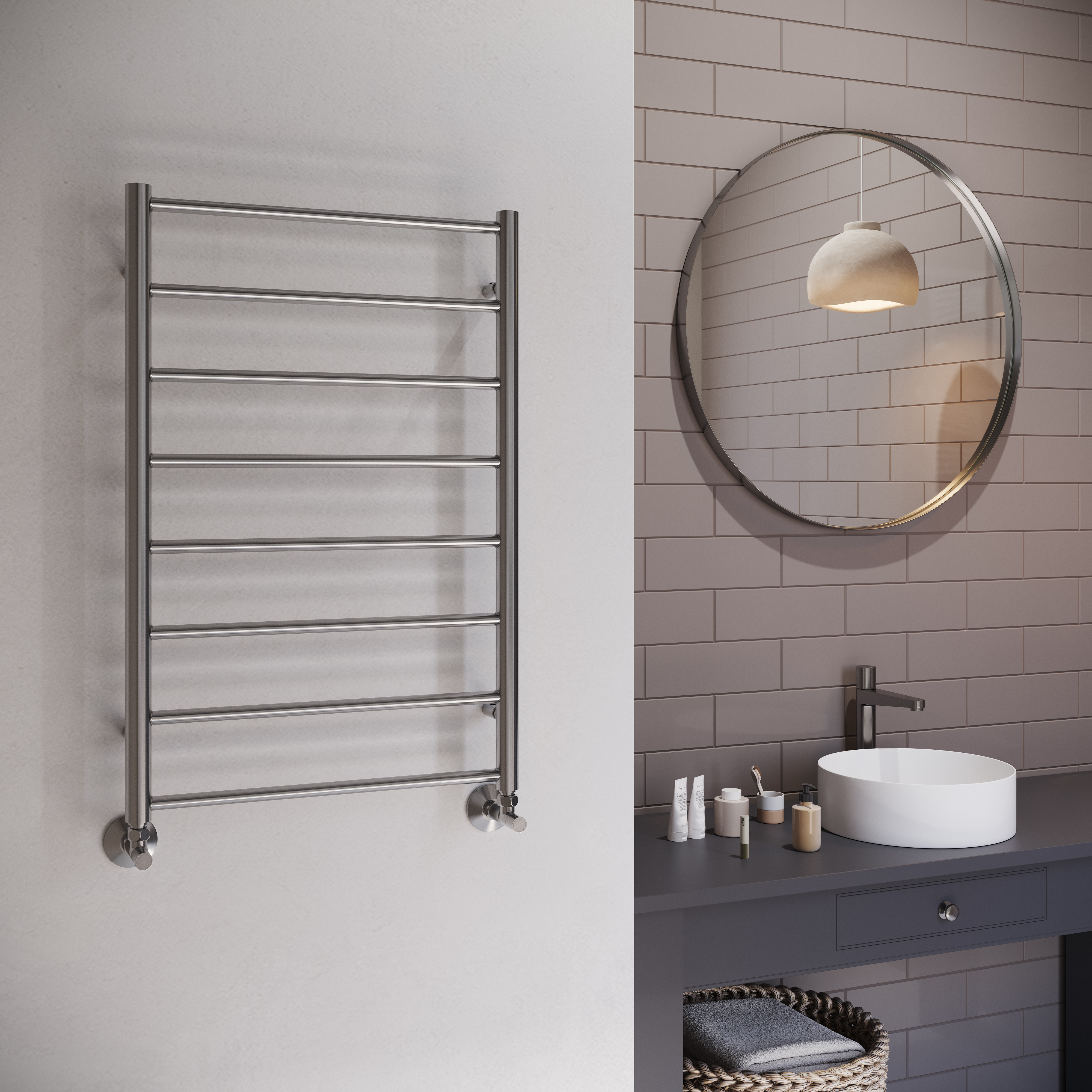 Полотенцесушитель водяной Терминус Аврора П8 500х800 Оружейная сталь с нижним подключением имеет форму лесенки. Изготовлен из прочной нержавеющей стали AISI 304L.