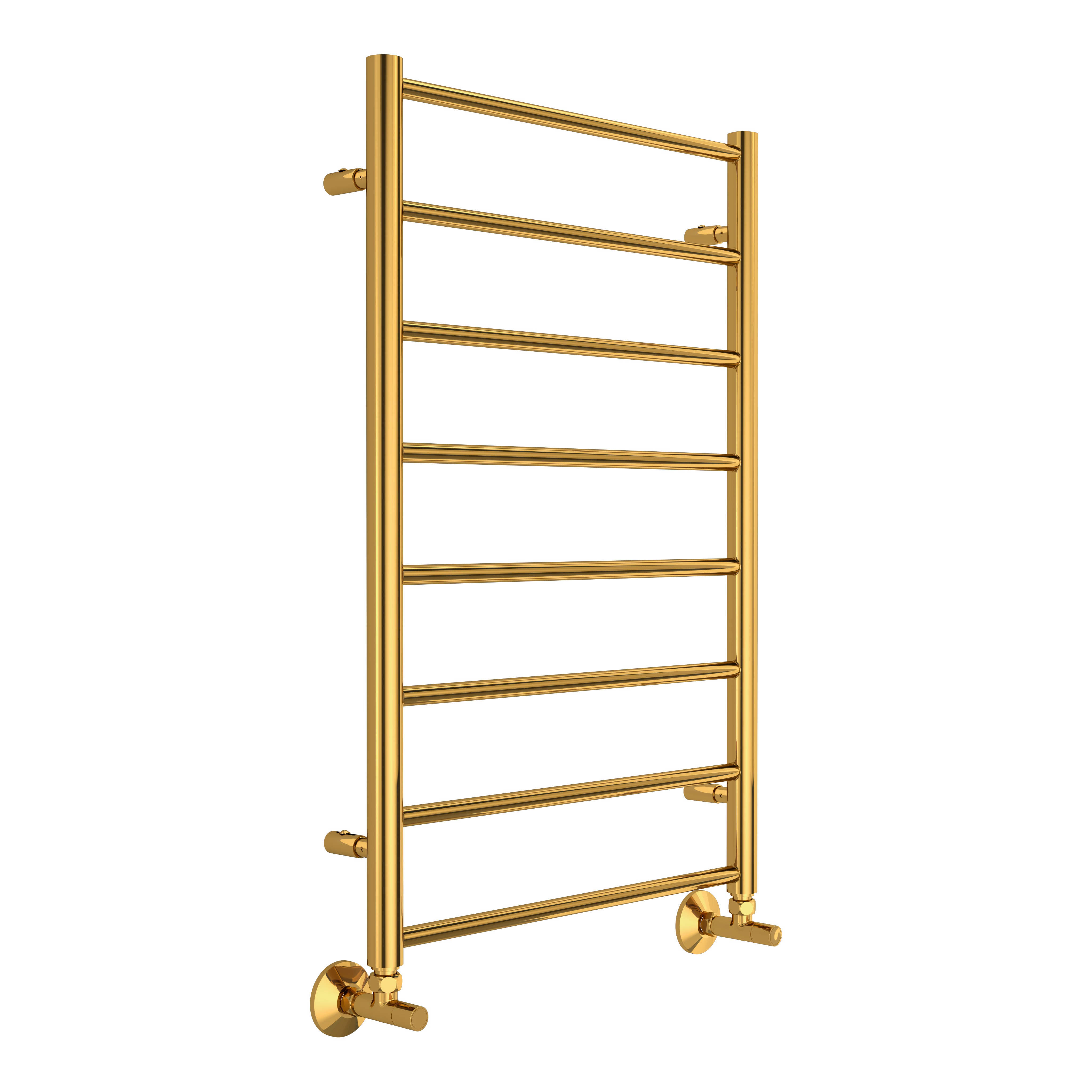 Полотенцесушитель водяной Терминус Аврора П8 500х800 Золото с нижним подключением имеет форму лесенки. Изготовлен из прочной нержавеющей стали AISI 304L.