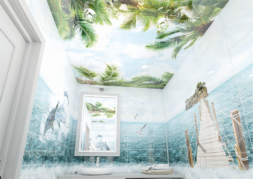 Красивые потолочные панели для ванны. Покупали к голубой плитке. Смотрится очень красиво. Привезли хорошо упакованными и быстро.