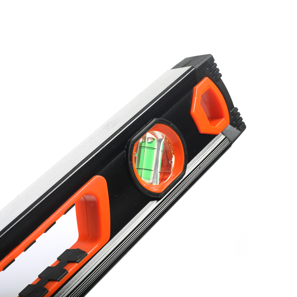 Уровень строительный длиной 1200 мм для определения отклонения плоскости относительно горизонтали или вертикали с точностью до 0,5 мм/м. Усиленный корпус выполнен из алюминиевого сплава и имеет фрезерованную поверхность. Торцы заглушки обеспечивают устойчивость к деформациям при падении. Предусмотрены две прорезиненные рукоятки для удобства работы на высоте.