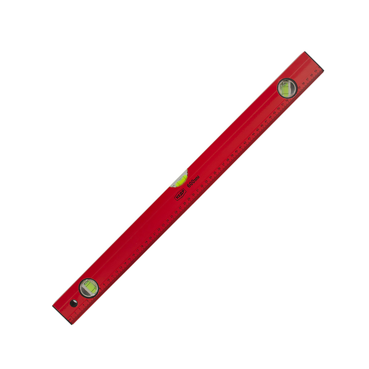 Пузырьковый уровень выполнен из алюминиевого профиля. Имеет три пузырьковых глазка для проверки отклонений по горизонтали, вертикали и под углом 45°.